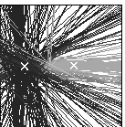 The optical flow constraints in this region come from two different surfaces. The "X's" mark the best estimated motions.