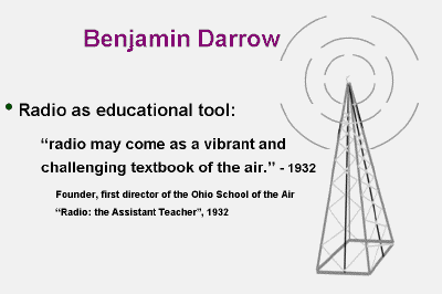 It did not replace textbooks. Benjamin Darrow thought it was going to be radio, the 'textbook of the air', a wonderful phrase.