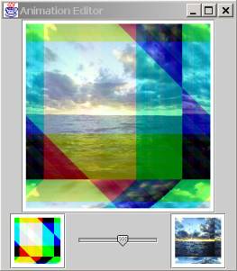 Two kinds of animation can be performed with the image generating behaviors. First, some of the filters are time varying. These are either functions of global time (like the saw pulse) or of an associated frequency spectrum from an audio track. A single behavior can be animated by varying the implicit time parameter. This generates interesting animations using a single behavior.