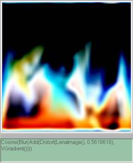 Double clicking on the expression in the text box allows the user to edit the EL code manually. Pressing the check button evaluates the new expression and the cross cancels the changes. If the expression is animated, the behavior display will animate appropriately. It is capable of 15-30fps for a 128x128 window. In general, the image filter operations were not optimized. I favored creation of many bug-free operators over a small set of fast ones. To provide real-time animation capabilities, however, I did optimize the slower filters especially for the 128x128 resolution. Blur, Distort, image sources, TimeSpinner and other complicated filters are approximately 10 times faster on 128x128 images than 128x127 images as a result.