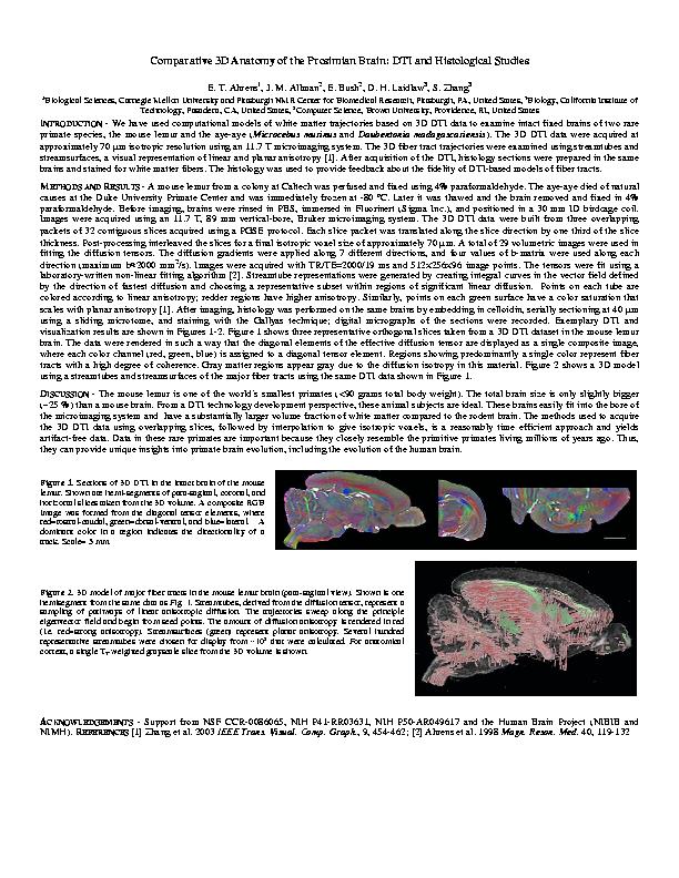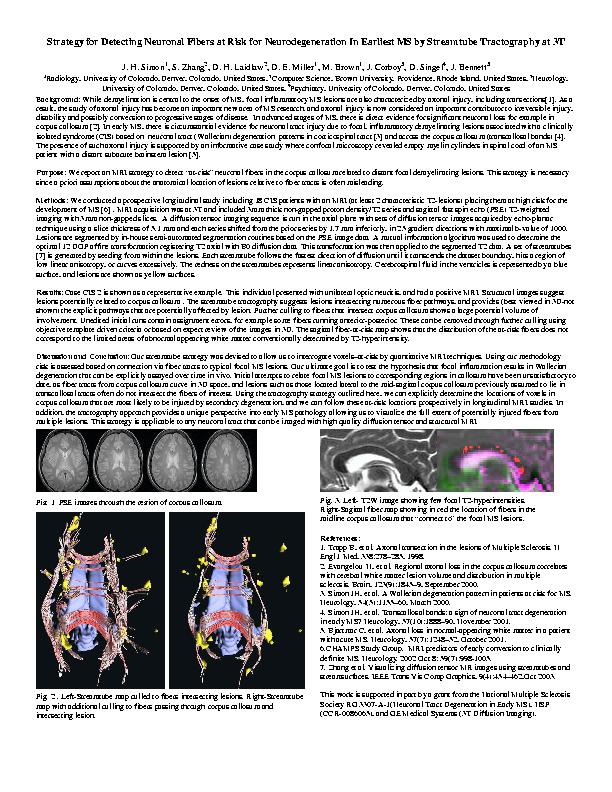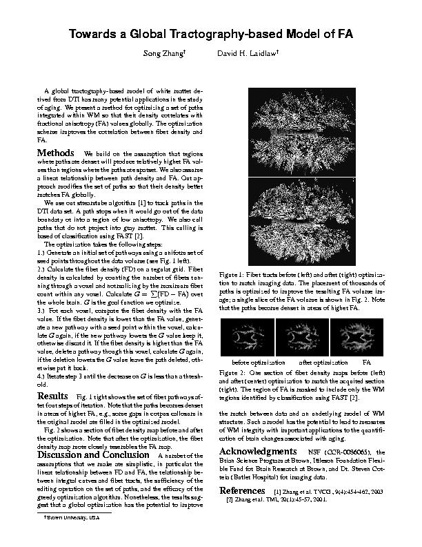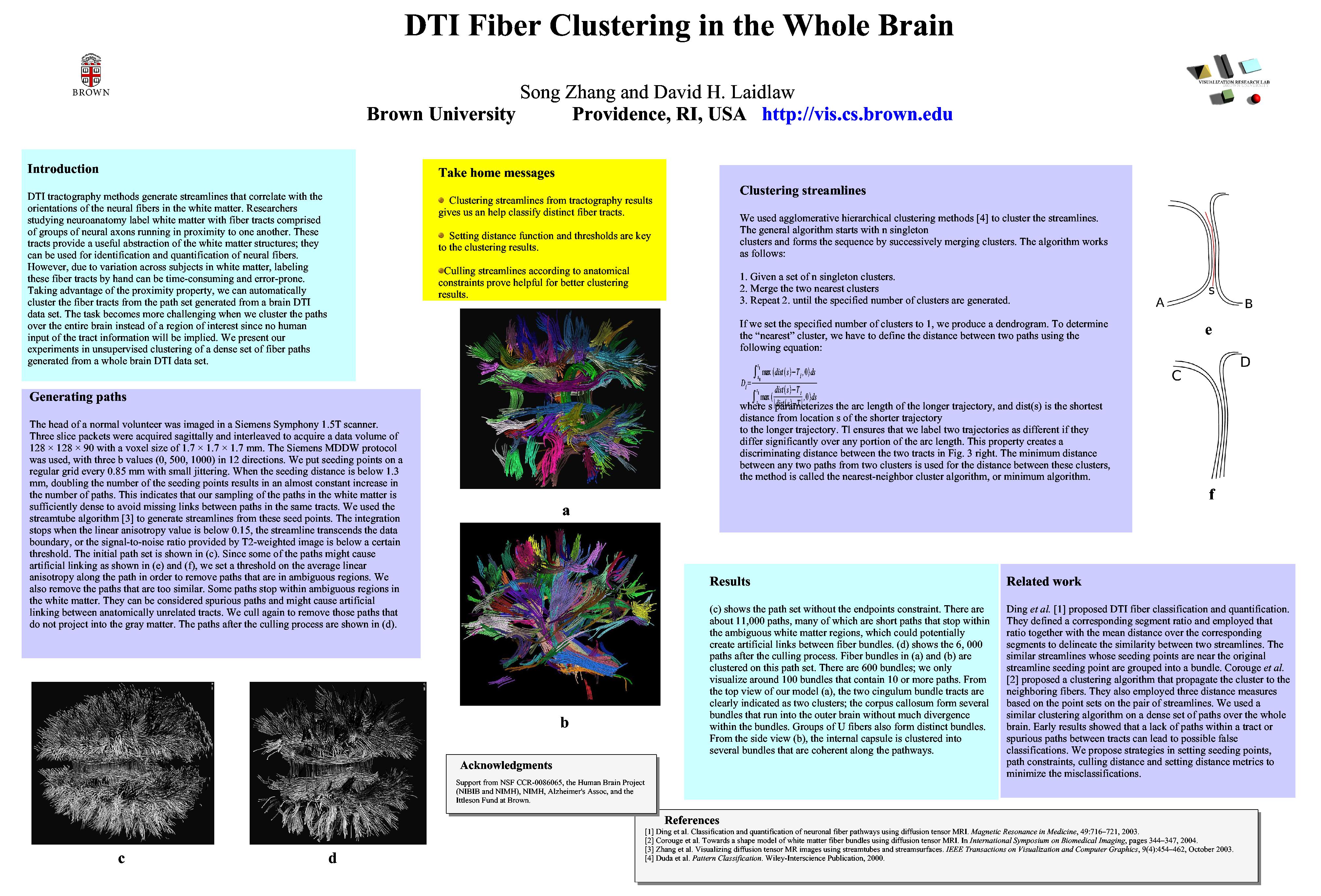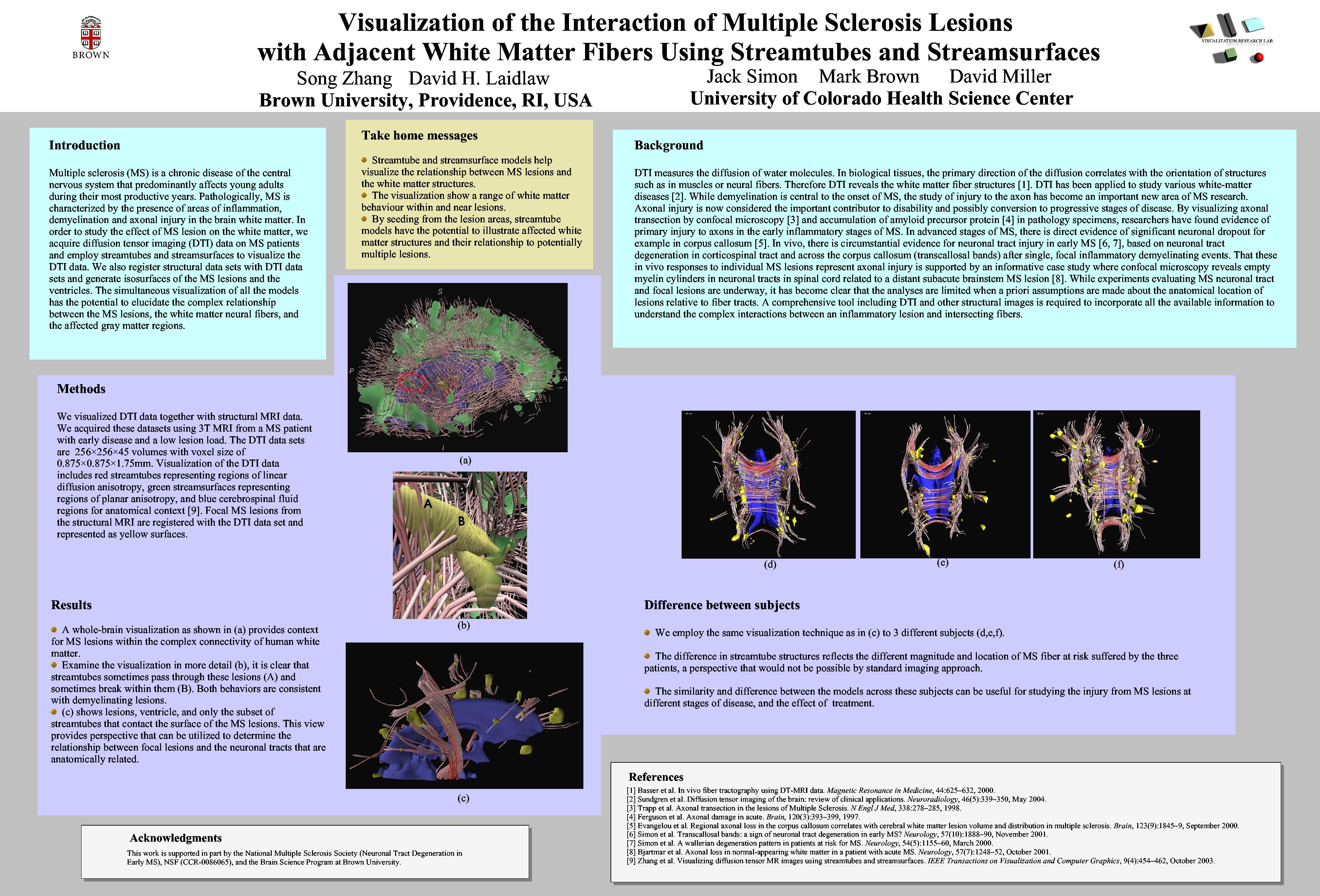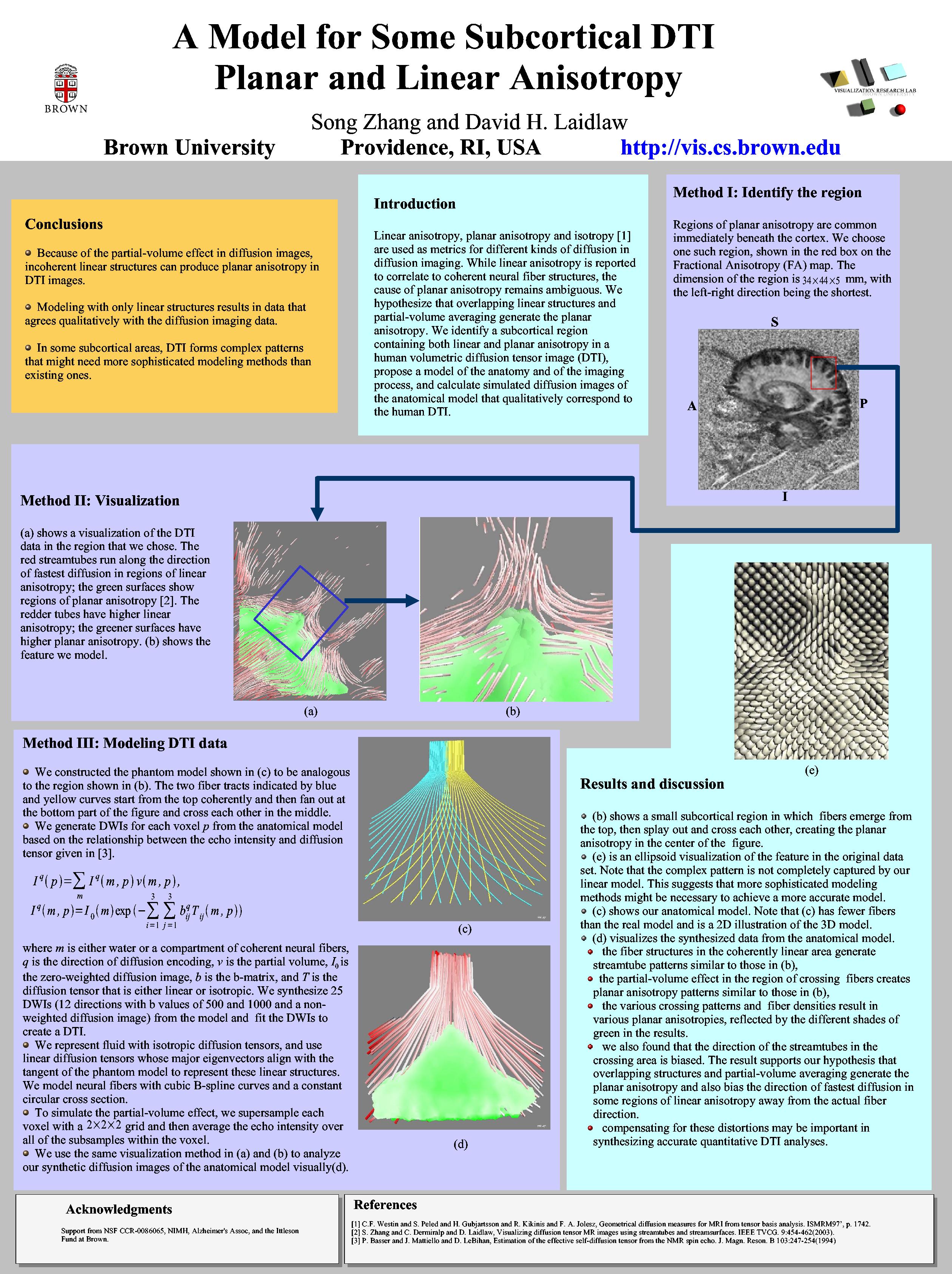 [Zhang et al., 2002] Song Zhang, David H. Laidlaw, Mark Bastin, Saurabh Sinha, and Thomas S. Deisboeck. Application of DTI Visualization and Analysis on a Data Set from a Brain Tumor Patient. In IEEE Visualization Poster Compendium, October 2002. (pdf) (bibtex: Zhang-2002-AOD). |
