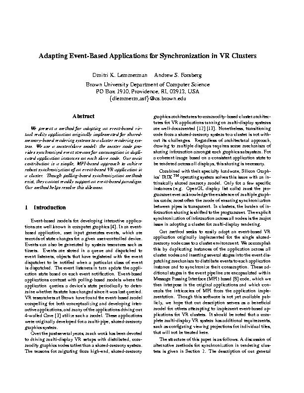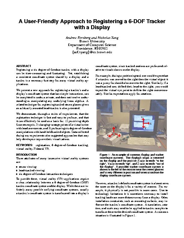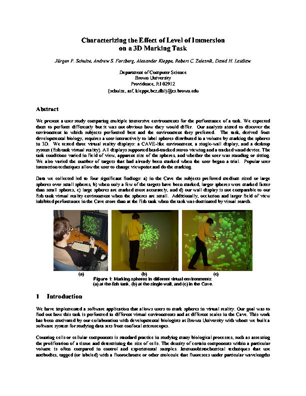 [van Dam et al., 2000] Andries van Dam, Andrew Forsberg, David H. Laidlaw, Joseph LaViola, and Rosemary Michelle Simpson. Immersive VR for Scientific Visualization: A Progress Report. IEEE Computer Graphics and Applications, 20(6):26-52, November/December 2000. (pdf) (bibtex: vanDam-2000-IVR). |