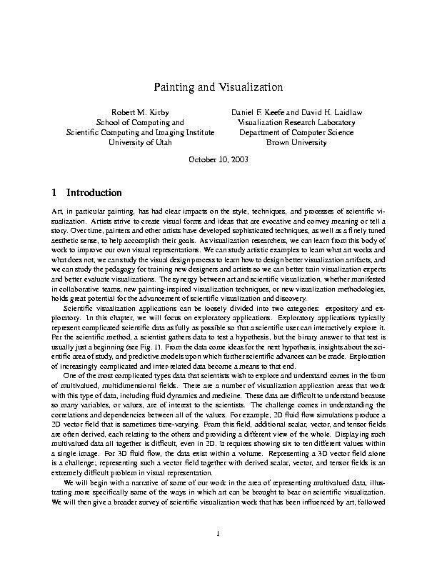 [Kirby et al., 1999] Michael Kirby, H. Marmanis, and David H. Laidlaw. Visualizing Multivalued Data from 2D Incompressible Flows Using Concepts from Painting. In Proceedings of IEEE Visualization 1999, pages 333-340, 1999. (pdf) (bibtex: Kirby-1999-VMD). |
