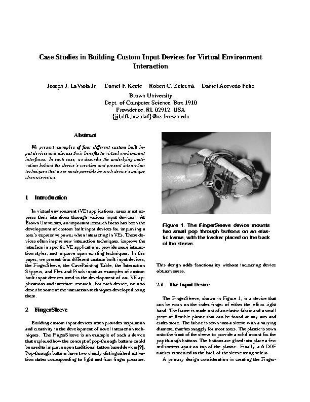 [LaViola et al., 2001] Joseph LaViola, Daniel Acevedo, Daniel Keefe, and Robert Zeleznik. Hands-Free Multi-Scale Navigation in Virtual Environments. In Proceedings of ACM Symposium on Interactive 3D Graphics, pages 9-15, March 2001. (pdf) (bibtex: LaViola-2001-HFM). |
