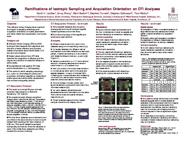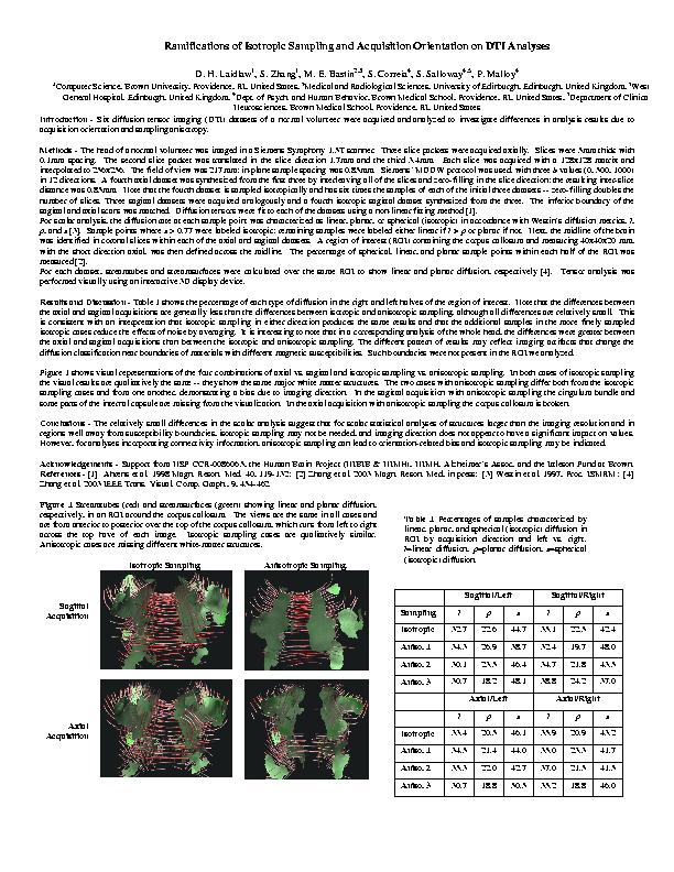 [DaSilva et al., 2002] Marco DaSilva, Song Zhang, Cagatay Demiralp, and David H. Laidlaw. Visualizing the Differences between Diffusion Tensor Volume Images. In Proceedings ISMRM Workshop in Diffusion MRI: Biophysical Issues, pages 237-238, March 2002. (pdf) (bibtex: DaSilva-2002-VDD). |