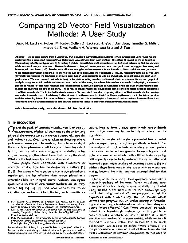[Laidlaw et al., 2001] David H. Laidlaw, Michael Kirby, J. Scott Davidson, Timothy Miller, Marco DaSilva, William Warren, and Michael Tarr. Quantitative Comparative Evaluation of 2D Vector Field Visualization Methods. In Proceedings of IEEE Visualization 2001, pages 143-150. IEEE, October 2001. (pdf) (bibtex: Laidlaw-2001-QCE). |