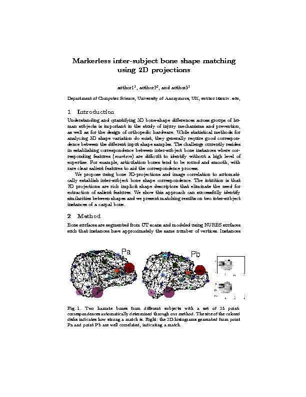 [Cooper et al., 2002] David B. Cooper, Andrew Willis, Stuart Andrews, Jill Baker, Yan Cao, Dongjin Han, Kongbin Kang, Weixin Kong, Frediric Leymarie, Xavier Orriols, Senem Velipasalar, Eileen Vote, Martha Joukowsky, Benjamin B. Kimia, David H. Laidlaw, and David Mumford. Bayesian Virtual Pot-Assembly from Fragments as Problems in Perceptual-Grouping and Geometric-Learning. In Proceedings of ICPR, pages 297-302, 2002. (pdf) (bibtex: Cooper-2002-BVP). |