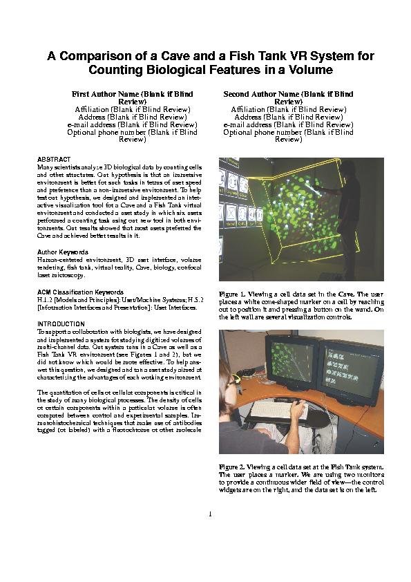 [Jackson et al., 2002] Cullen Jackson, David Karelitz, Sean A. Cannella, and David H. Laidlaw. The Great Potato Search: The Effects of Visual Context on Users Feature Search and Recognition Abilities in an IVR Scene. In Poster Proceedings of IEEE Visualization, October 2002. (pdf) (bibtex: Jackson-2002-TGP). |