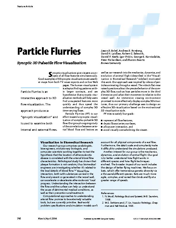 [Sobel et al., 2002] Jason Sobel, Andrew Forsberg, Peter Richardson, David H. Laidlaw, Daniel Keefe, Igor Pivkin, and George Karniadakis. Arterial flows seen in virtual reality. In Proceedings of the 21st Southern Biomedical Engineering Conference, pages 349-350, 2002. (bibtex: Sobel-2002-AFS). |