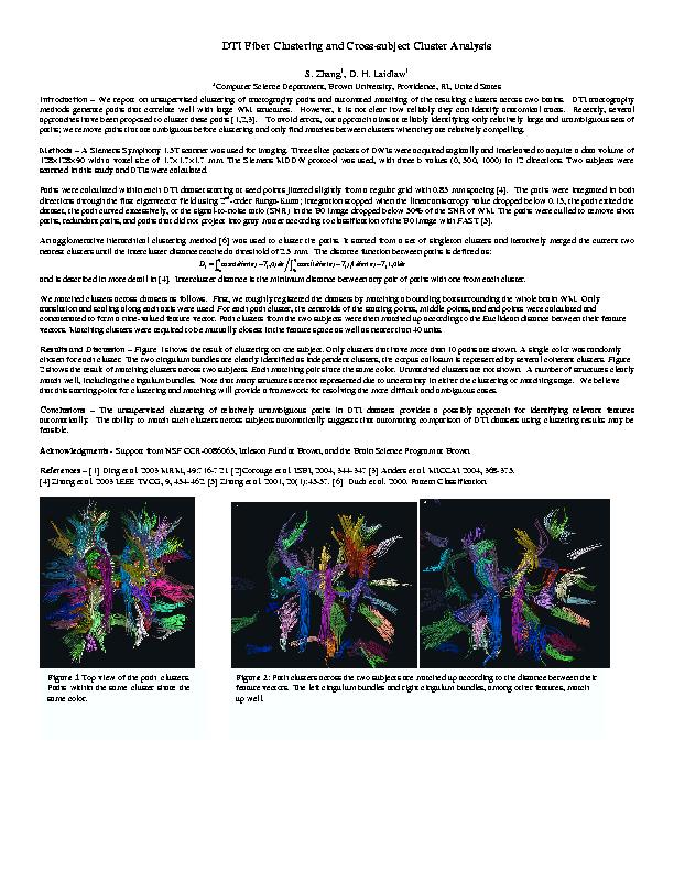 [Cabeen and Laidlaw, 2013] Ryan Cabeen and David H. Laidlaw. White Matter Supervoxel Segmentation by Axial DP-means Clustering. In Proceedings of Workshop on Medical Computer Vision, MICCAI, 2013. (pdf) (bibtex: Cabeen-2013-WMS). |