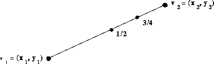 vt = (1 - t)v1 + tv2 called convex linear combination of v1 and v2; a linearly weighted sum