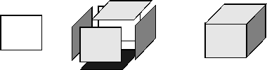 Cube drawn by tracing paths of vertices of a square as it moves perpendicularly to itself (three-dimensional entity)