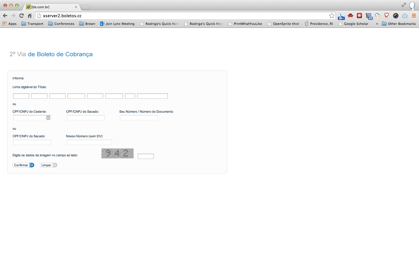 O navegador então requisita a página em http://xserver2.boletos.cc, que retorna um formulário falso de geração de boleto: