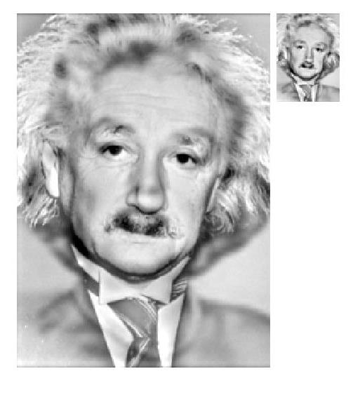 It's a bird -- it's a plane! No, truly! By exploiting matlab and human perception, we can create hybrid images that appear different depending on the viewer's distance. Summary: Close up, the human eye sees high-frequency components. Farther away, we see lower-frequency components. When we combine lower frequencies of one image and the higher frequencies of another, we can create a mashup image that seems to trick the eye. Where do we get lower frequencies of an image? Gaussian filtering. Higher frequencies? Laplacian filtering. To wit, I have made no variations to the algorithm given on the course page. I kept the Gaussian filter constant (7x7, sigma = 1), and toggled only the levels of the Laplacian pyramid used. More levels should be used for 'distant' images that are full of sharp contrasts and lines. |