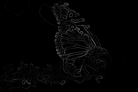 All we need to do now is combine our canny baseline with our brightness and texture gradients to create our new pb filter. We take the mean of the brightness and texture gradients at every pixel, so that we get one value per pixel. Then, we simply element-wise multiply our brightness gradients, texture gradients, and canny output to generate our output image.
