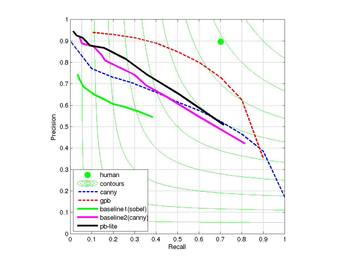 Finally the output for all of the evaluate using the the Berkeley Segmentation Data Set 500 (BSDS500)