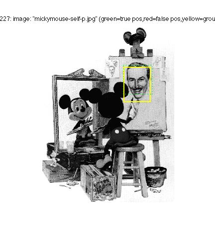 To improve our results, we use an iterative technique called "mining hard negatives." Using our newly trained classifier, we revisit our non-face dataset. Running the classifier on this dataset will inevitably produce some erroneous face detections. Since we know these detections are false-positives, we add them to our training set as non-faces and re-run the SVM. The addition of this additional hard negative data (data that looks a bit like a face) the SVM will be able to construct a slightly better face/non-face boundary: