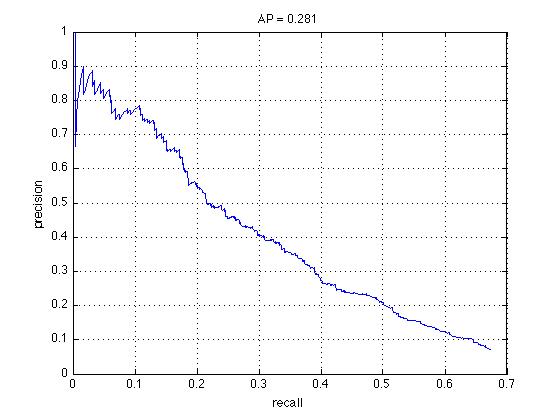 Using a non-linear SVM as a classifier improves results a bit more (these results were generated without mining for hard negatives; hard negative mining would probably have resulted in even better results):