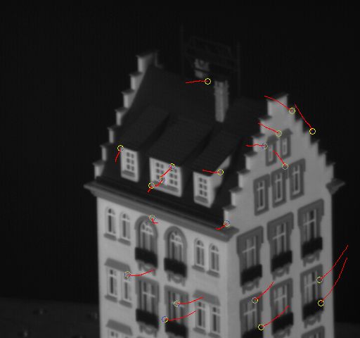A KLT tracker is first used to track several key points, chosen with a harris corner detector, across a sequence of images.