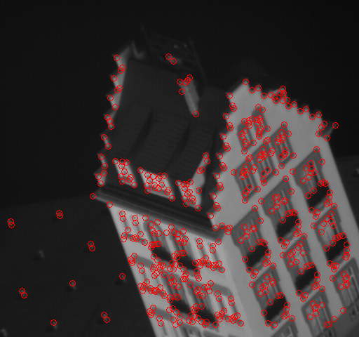 Fig. 1: 500 strongest keypoints detected in the first frame by the Harris Corner detector