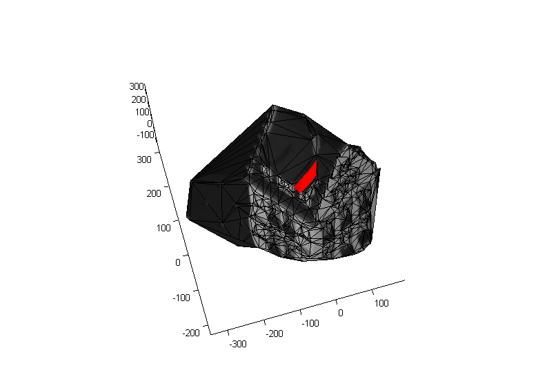 Fig. 5: Structure of the hotel recovered from motion. This is the predicted 3D locations of the tracked points. Predicted 3D path of cameras shown in red