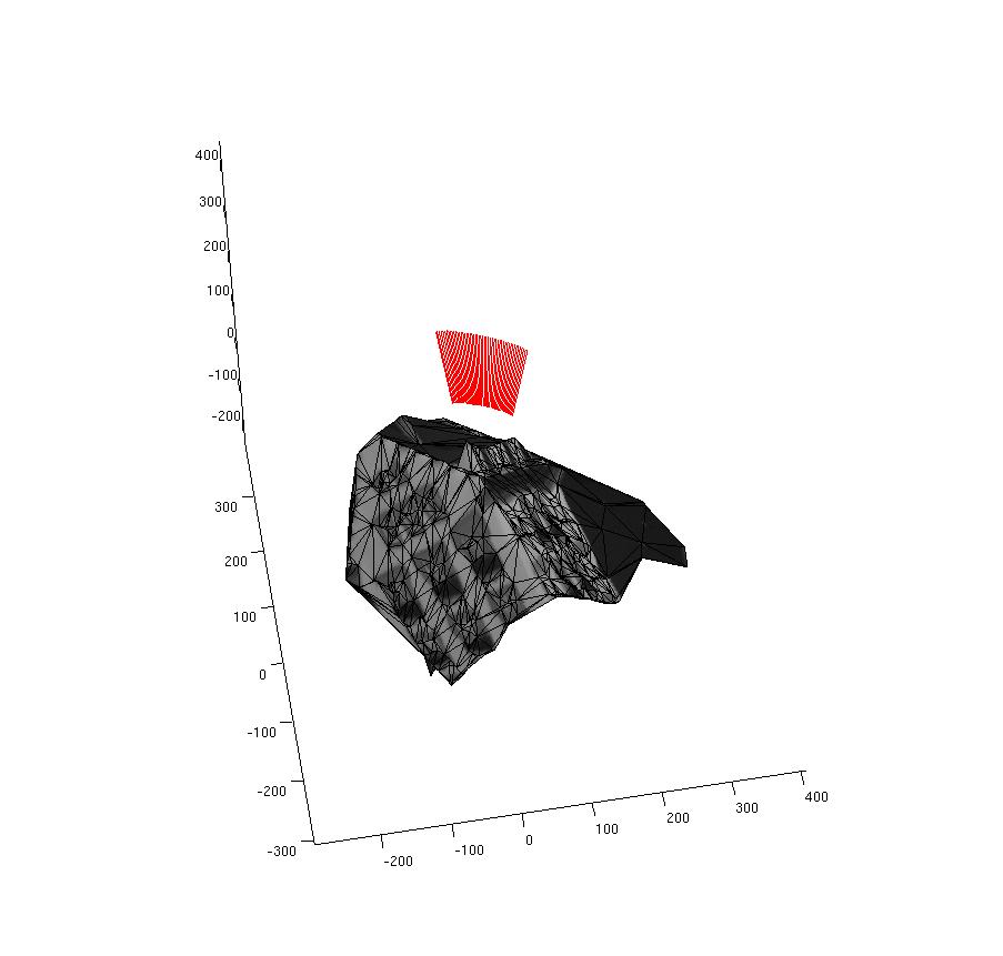 The final step is to use the collected information about the motion of the keypoints to actually recreate the 3D structure. This algorithm, described by Kanande and Tomasi in "Shape and Motion from Image Streams under Orthography: a Factorization Method," seeks to take the tracking data to estimate the camera parameters for each frame as well as the 3D coordinates of each of the interest points. This algorithm first centers the points in each frame relative to the average locatoin of all points in the particular frame. Then this centered measuremnt matrix is factorized using singular value decomposition (SVD), and the results of the factorization are manipulated to construct premliminary motion (camera) and shape (3D points) matrices. The final step is to eliminate the affine ambiguity of these matrices, as described by Morita and Kanade in "A Sequential Factorization Method for Recovering Shape andMotion From Image Streams," to recover the particular motion and shape matrices which give the object's 3D structure.