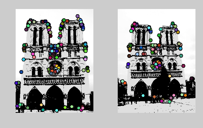 I am puzzled at where to continue, except for the optional features that should not be required to get a good number of matches. Since my implementation performed poorly enough on the test images, it seemed silly to provide additional examples here, so I decided not to.