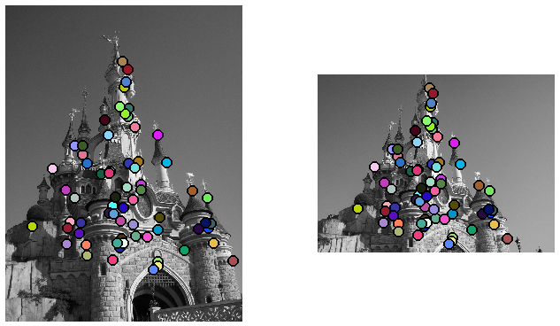 ANMS method is applied to select part of the points from Harris detection results, in order to restrict the maximal number of interest points and make them well distributed.