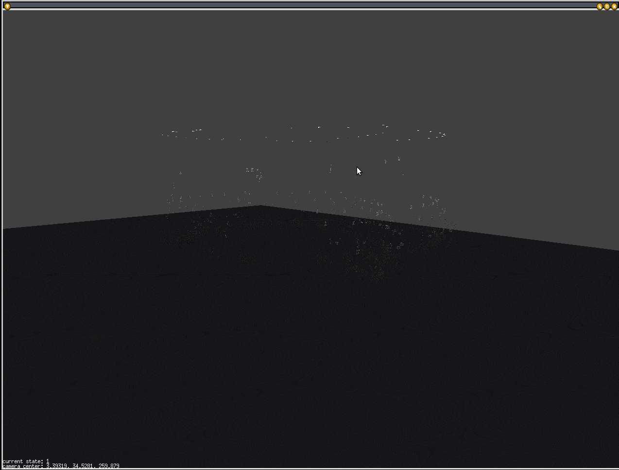 The visualization here is drawing a cube for every cell, dead or alive, in the simulation (this means that, in general, upwards of two million cubes are drawn). A good framerate is maintained by using VBOs and glDrawInstanced. The instance ID is used to look up the texture coordinate (1D id mapped to 2D texture) and determine the final position of the vertices in the cube. For each simulated frame, cells that are alive dim in the original texture (color = color*0.01, clamped to .1). This allows future shaders to know how long alive cells have been alive. The visualization both lightens the models as they're alive longer, and makes them rise in space.