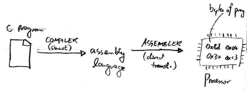 Let’s take a look at how your C program get turned into hexadecimal bytes that can run on your processor.