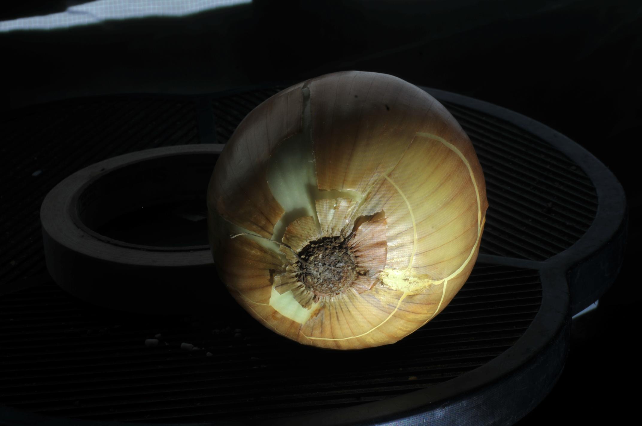 Implementing the imaging system described above will give a result, but intuitively it won't work perfectly if, for instance, there is global component stemming from very local effects between objects that are lit/unlit together. To rectify this problem, we take 25 images. Instead of simply inverting the checkerboard illumination pattern, we create 25 unique checkerboards to illuminate with. In this case, we used a pattern that was 8x8 pixels on the projector and shifted the pattern by 3 pixels 5 times in each of the X and Y directions. This pattern increases the likelihood of detecting correct global lighting due to highly local effects. To leverage the 25 images, for each pixel we take the pixel from the source with the maximum brightness and the minimum brightness for our values. This means we will probably use information from each of our 25 images. To find maxima and minima, we want to combine all three of the RGB channels into one brightness, so we create a grayscale image and use that as our basis for judgement. Once we know which pixels are brightest and darkest, we index into our color image to get color versions of the maxima and minima. See below for maximum and minimum images for the onion example.
