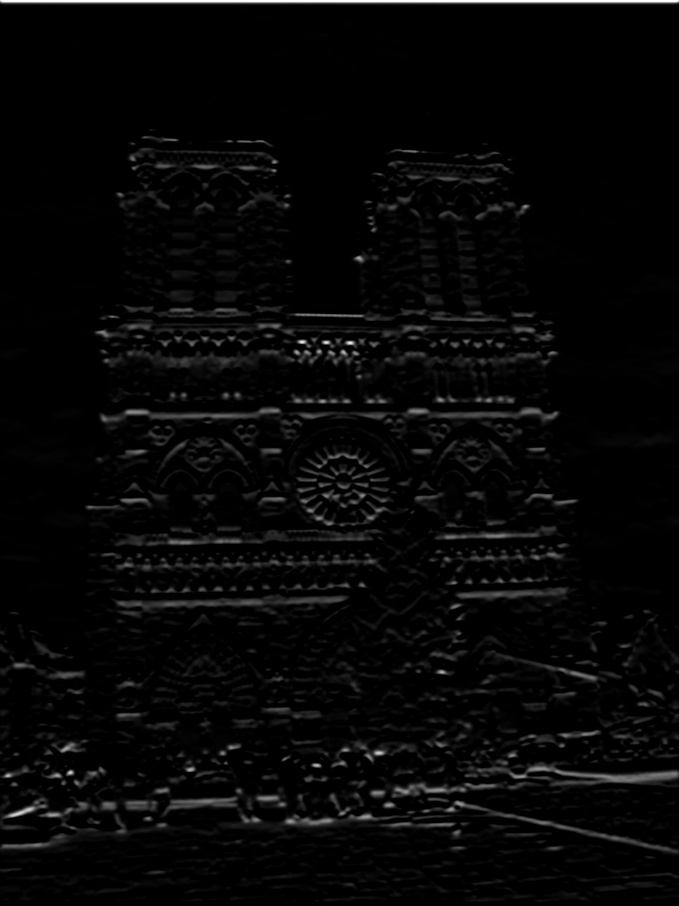 One of the photos of Notre Dame, and the derivatives in the x and y directions.