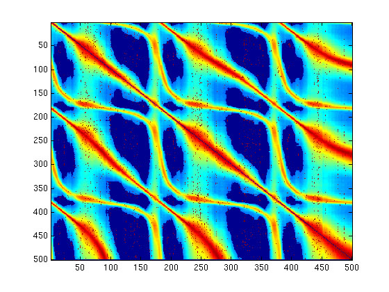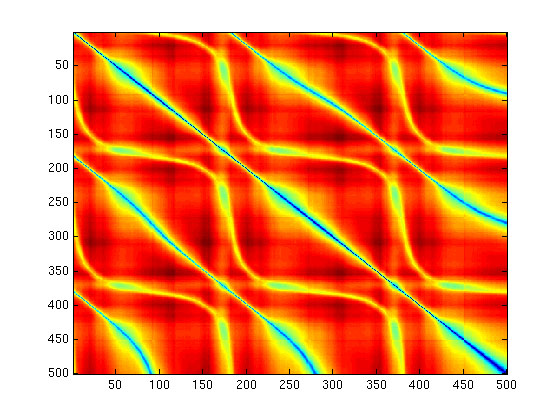 While this process preserves smoothness in transition, it does not retain any form of physical dynamics embodied in the video. Actual physics computations would prove costly. Instead, we require that for a frame to be classified as similar to another, frames temporally adjacent to them must also be similar. By calculating a weighted sum of possible past and future transitions, we increase the probability that these transitions will happen in a proper order. This sum is achieved by convolving the difference matrix with a diagonal kernel.