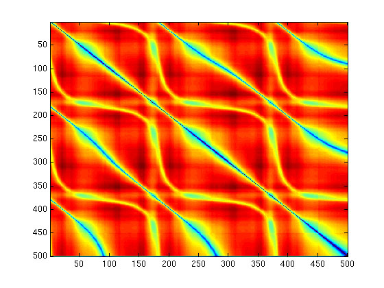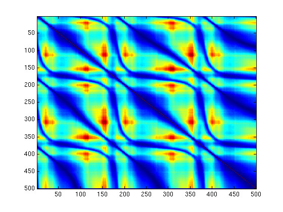 Audio Textures were attempted, but failed to produce any meaningful results. By reading in the wave values of a given audio track, I was hoping to find smooth transitions between values to produce music similar to the input. However, a decent-quality, medium length audio track has well over 9 million values in two different channels. The sheer volume restricted my ability to test this idea. A short sample of length 10000 was created from the middle 1000 of a track. The similarity metric used was the L2 distance between the derivatives of the values. Not knowing much about audio data, I assumed the sharp changes in values is what causes different sounds, and decided to compare with that.
