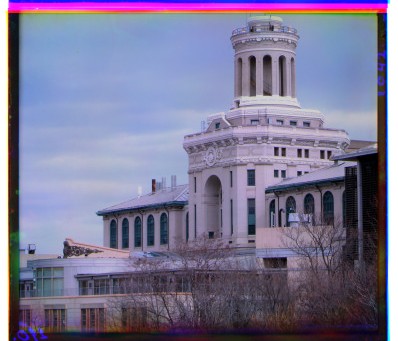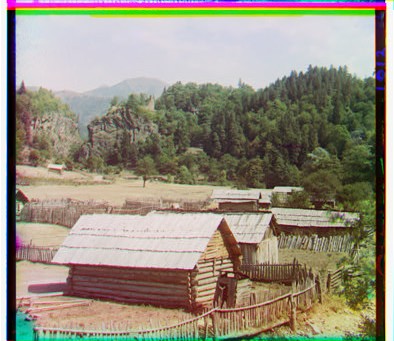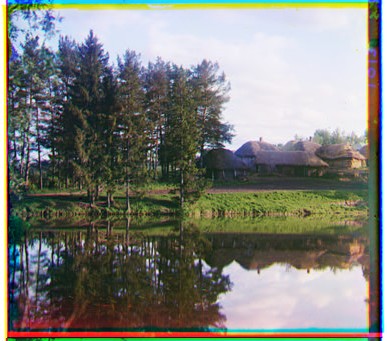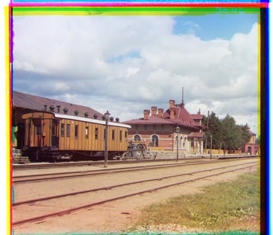 The key to my alignment algorithm was edge detection. This was because the intensities of the images differed for the B, G, and R images, making a simple sum of squared differences iffy. The only thing that really mattered was that the edges lined up, not the values inside the edges. I only used the middle 70% of the images because the black outer borders produced strong edges that kept throwing off the alignment. I then create the gaussian pyramid. The lowest level of the pyramid is the first level at which both dimensions are less than 100 pixels long. I found that smaller images occasionally distort the important features too much and completely throw off the alignment. Next i try shifting over a window of pixels. Since the shifted picture will have empty pixels where the original image was shifted from, the distance metric is only computed over the valid pixels, and then divided by the number of valid pixels, so that the distance becomes error per pixel. This avoids giving too much error to images that shift more. After finding the shift, i record the total shift, adding it to any existing shifts, and then double it on the next level of the pyramid since the scale of the image is also doubled. The distance is computed as a simple sum of square differences over the edge image. A sobel filter was used to do the edge detection.
