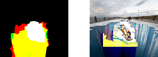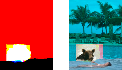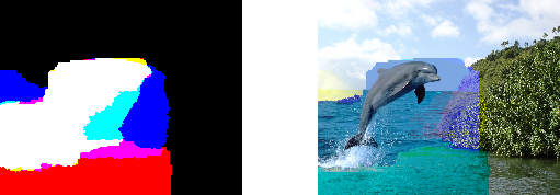 This project takes two images and two masks and produces a composite. The composite is produced with a graph cut where the pixels are nodes in a graph each linked to neighbors with edge weights based on the difference between the two images. The masks are treated as source and sink. The idea is to use the masks to specify portions of each image that will appear in the final image. Outside of those control regions the alogrithm will try to find the seams where the difference between the two images is at a minimum that way the transition from the source to sink will be as seamless as possible. The exact edge weight between nodes (neighboring pixels) is the sum of the squared difference between the pixel values of the two images and the squared difference between the neighboring pixel values of the two images. Edges to the source and sink are weighted at infinity.