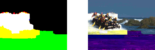 This needs to be used in tandem with some sort of blending or color balancing technique. The algorithm may find the best seam but if the images have similar patterns but widley different colors and that breaks this horrbily. The only thing that works well is water because we are used a wide variety of choppy whites and blues.