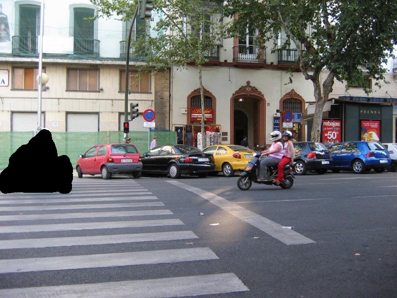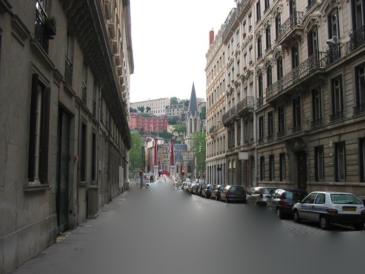 I also implemented the pure poisson fill extra credit. The results from scene completion are universally better than the Poisson fill results. The lack of texture in the filled regions is ruinous. Scene completion fails when the mask cuts through objects, but Poisson blending just looks like there was a greasy spot on the camera lens. Both approaches work resonably well for fluids, but smeared lack of texture is more noticeable than slightly choppy textures, so scene completion is superior there as well.