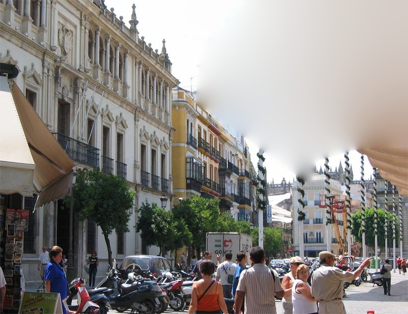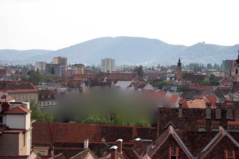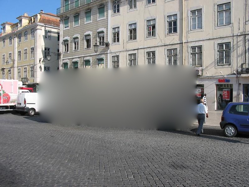 The goal of this project is to fill a masked region of an input image with information from one or many images that have been deemed related. My approach is to find the best region in each matched image that can fill the hole in the input, composite the two, and score the composites. The matched images are first scaled to be the same size as the input image. Then I use a gaussian pyramid built from canny edge detected images to find the best relative translation to align the two images. Pixels near the masked area of the input image are weighted more than pixels away from it by a guassian peaked at the center of the masked region. The masked region is ignored during alignment. Once the best alignment has been found, I graphcut to find the best seam with which to combine the images. Every pixel that is fifty pixels or more from the border of the masked region is constrained in the input image and every pixel in falling under the mask is constrained in the matched image. This forces the graphcut to completely fill the hole and allows the graphcut to chop a small amount into the input image to find a better seam. Finally I used Poisson blending to composite the match with the input. Composites are scored based on the cost of the seam and the shift associated with the alignment. Each factor is weighted equally.