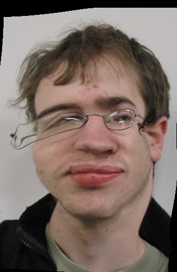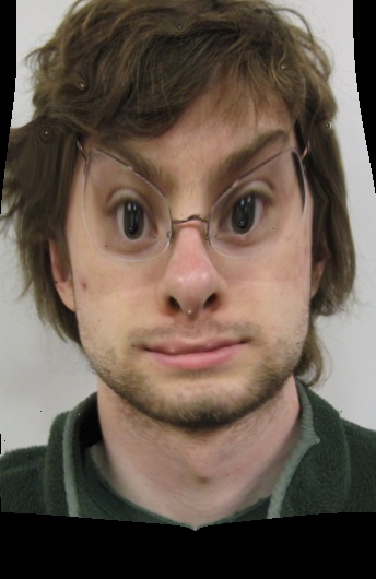 The algorithm can be slightly modified to produce a average face. This is done by averaging the correspondence points and then morphing each face to the average point set. Then each of those morphed images is averaged to produce the above result.