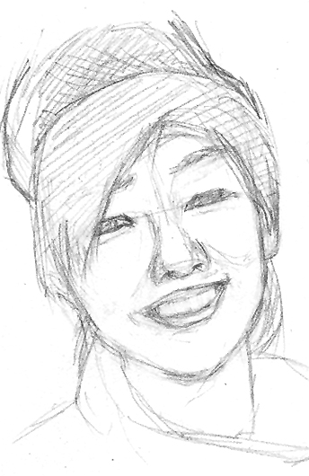 For kicks i tried running the algorithm on a sketch of myself and of a friend. Since a sketch depends on sharp boundaries i expected it to look pretty iffy, but it actually turned out quite well.
