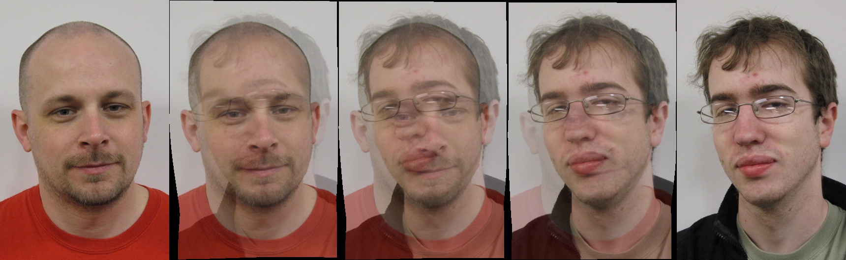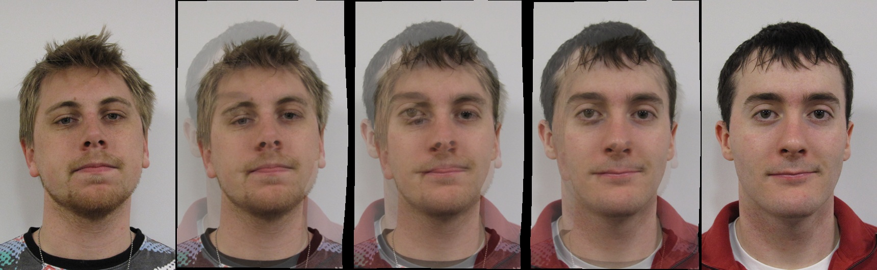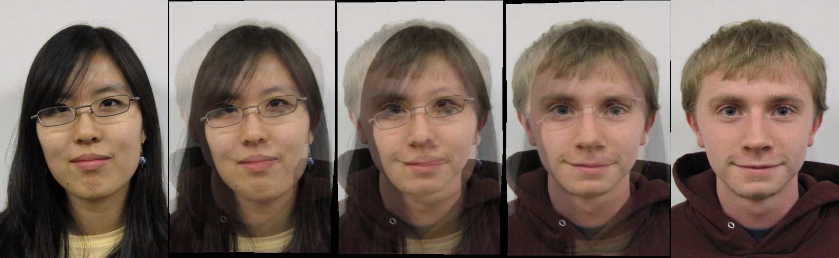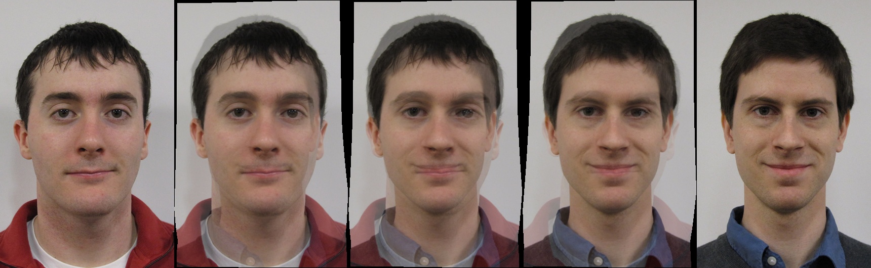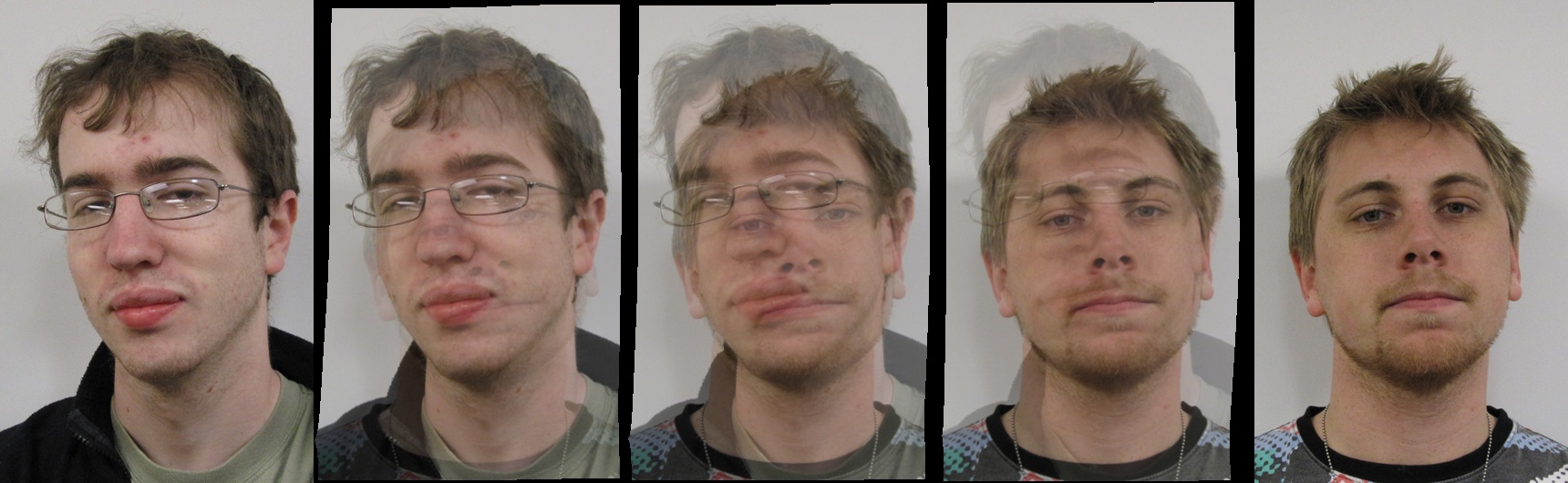 ptsA*(1-warpratio) + warpratio*ptsB ). Both images are then