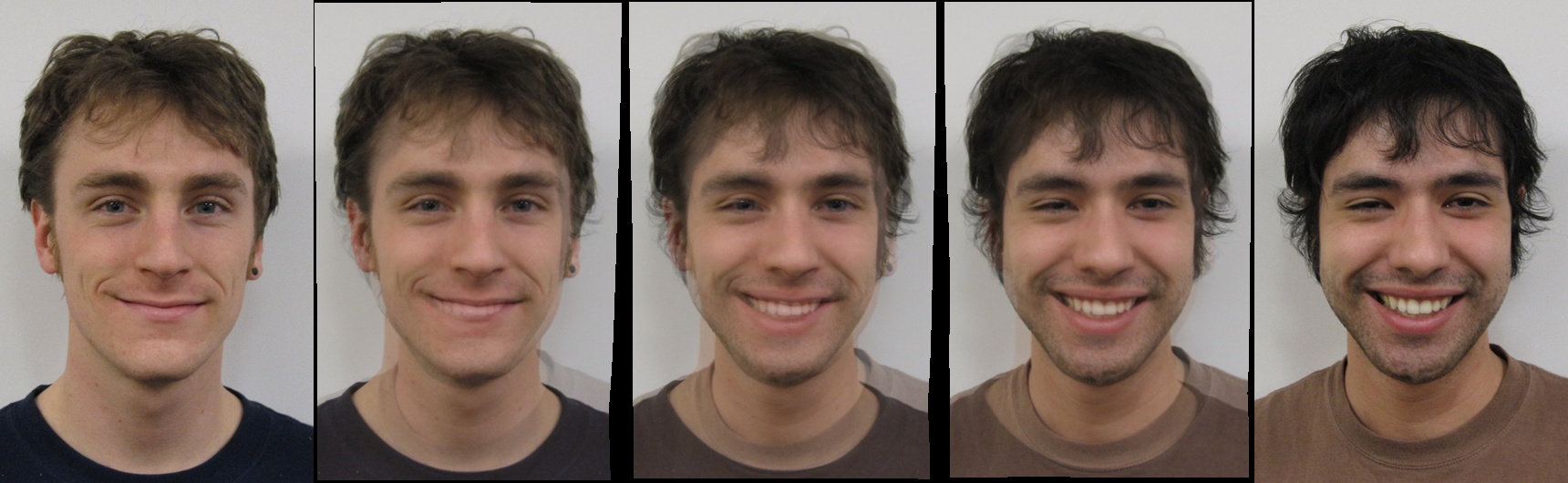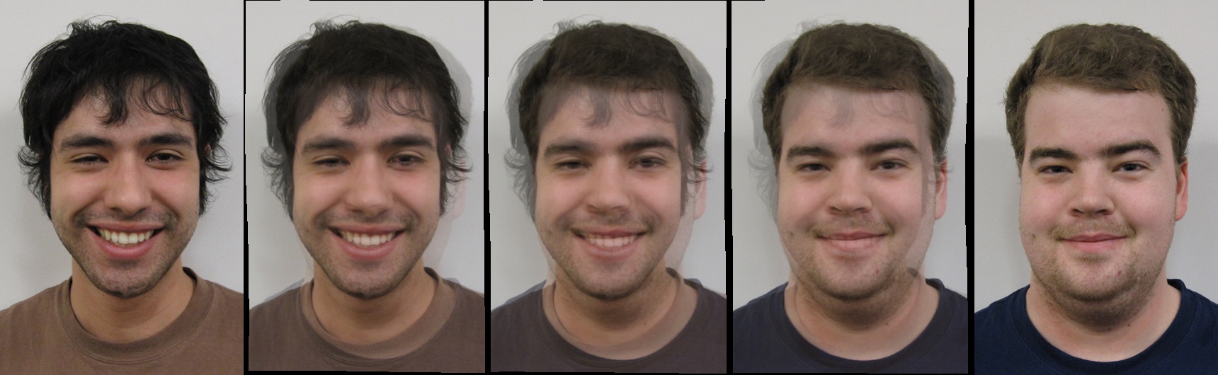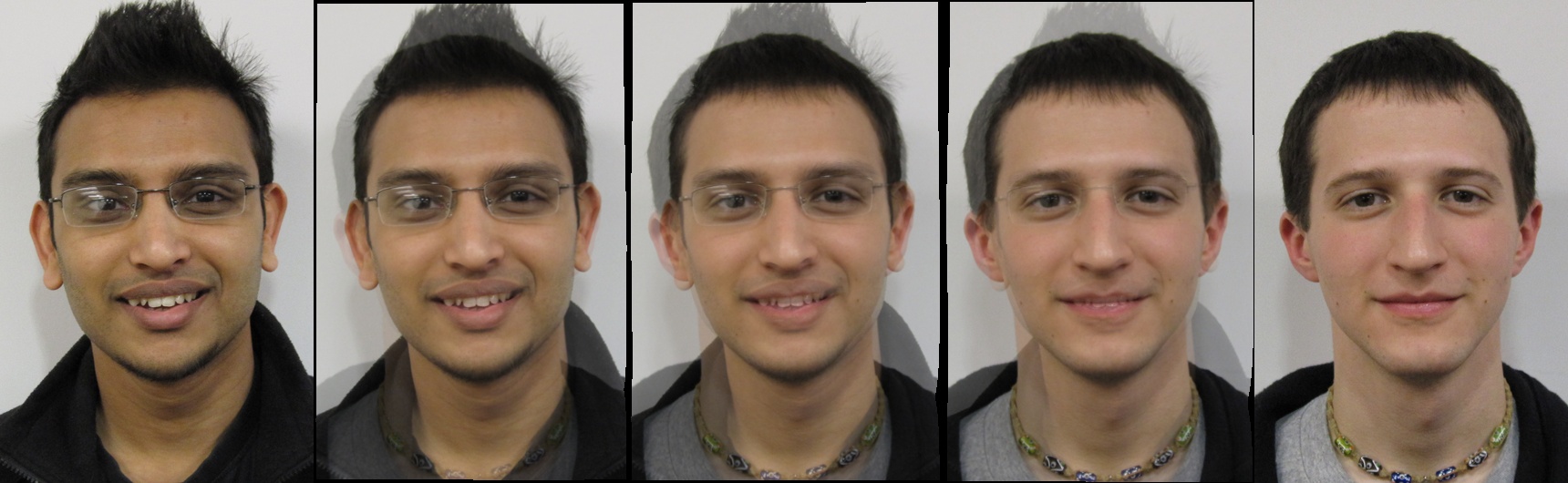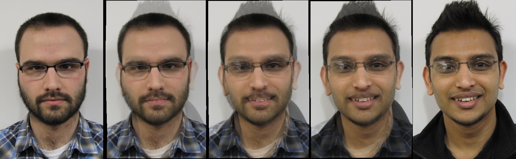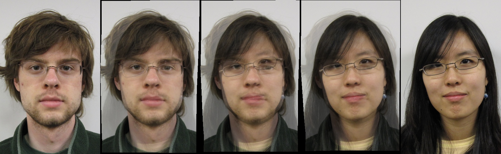 ptsA*(1-warpratio) + warpratio*ptsB ). Both images are then