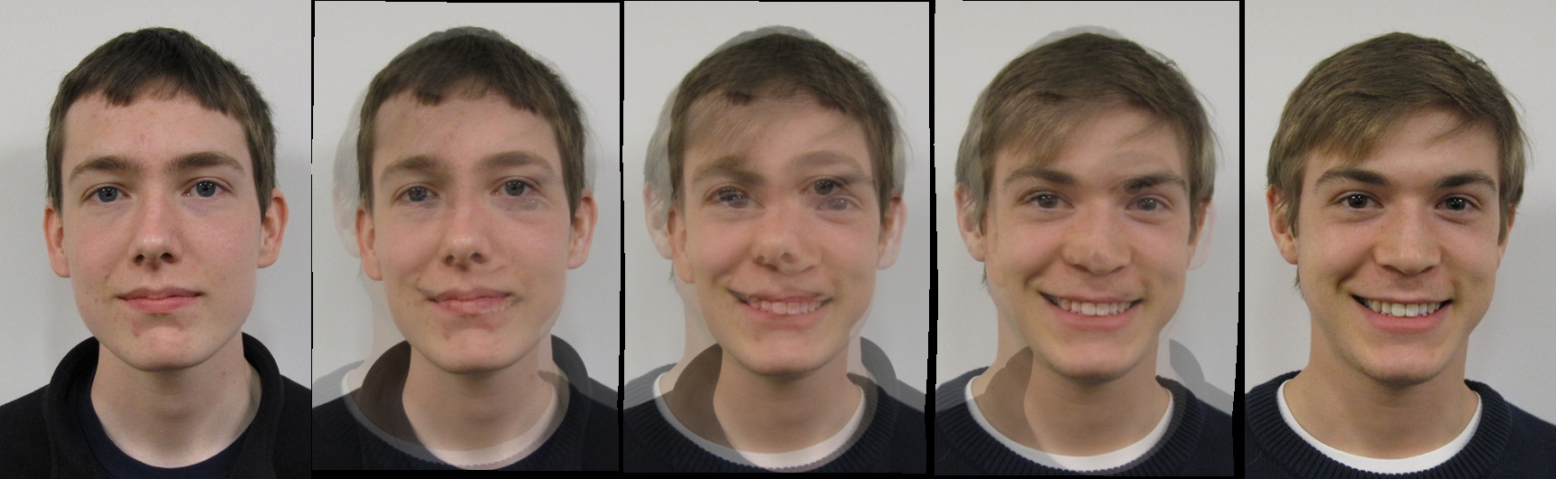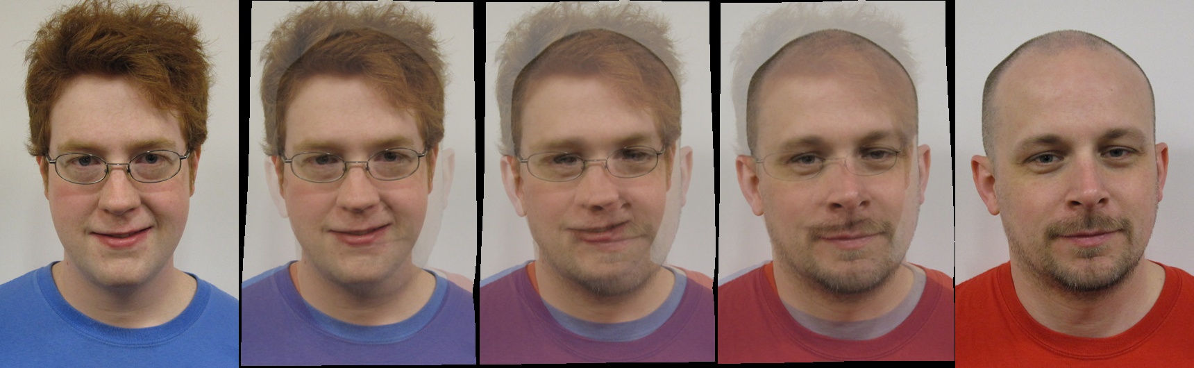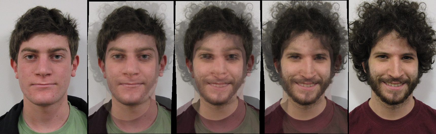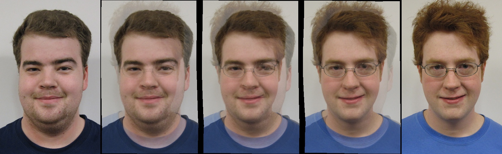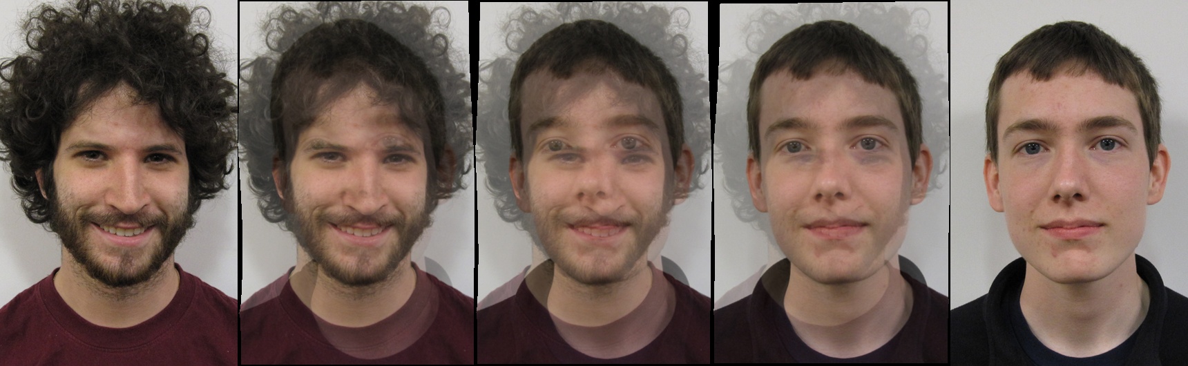 ptsA*(1-warpratio) + warpratio*ptsB ). Both images are then