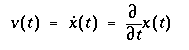 velocity of the particle at time t.
